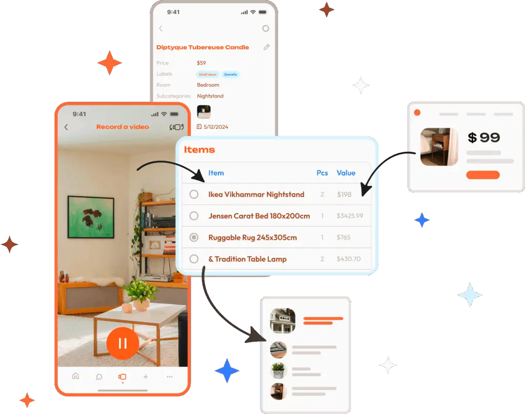 Our AI goes through the video and creates a list of all your items. You can edit or ad new items easily afterwards.
