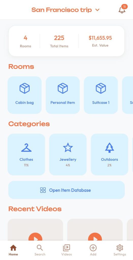Now, because ReEmber wasn’t originally designed specifically for travel, some of the terminology inside the app might feel a little unusual in this context. But think of your suitcases as your mini home for the duration of your trip. For those days or weeks, everything you own, or at least everything you rely on, lives inside that bag.