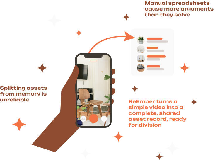 ReEmber is the world’s first asset division app that creates a detailed inventory of your shared belongings from a simple video — turning a process that takes weeks of arguments into a clear, fair split in just 30 minutes.
